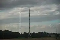 | Eine stationäre Einrichtung zur Übertragung von Radio, TV und/oder Mobilfunksignalen, ggf. mit Gebäuden für Personal und Betrieb der Sendeanlagen. |