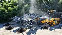 Diese Bezeichnung steht für ein stationäres industrielles Recyclingunternehmen, das das Material zerkleinert, sortiert oder speziel aufwertet. Es kann sich um Bauschutt, Plastik, Papier, organische Abfälle usw. handeln.