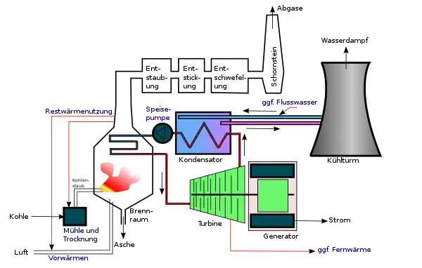| Kraftwerk, bei dem Energie durch die Verbrennung von Braunkohle oder Steinkohle erzeugt wird |