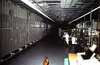 ![]() | Dies ist ein großes technisches Gebäude, in dem ein Hauptverteiler untergebracht ist, um Teilnehmer an eine Telefonzentrale anzuschließen. Die senkrechte Anordnung ist die Teilnehmerseite. Dies ist ein großer Hauptverteiler auf Kupferbasis. Die Geräte auf der rechten Seite sind nicht mehr aktuell. | |