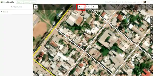 Cuando estamos seguros de la ubicación del establecimiento, debemos crear un nuevo Punto que va a marcar la posición del hospital: