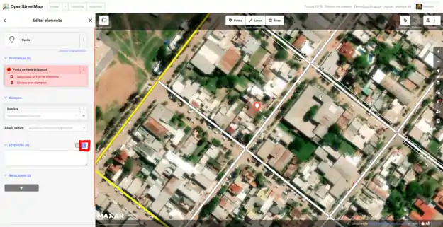 En el cuadro que aparece debajo, pegamos las etiquetas que copiamos en MapRoulette y presionamos el botón que se encuentra a la izquierda del anterior, para generar los campos.