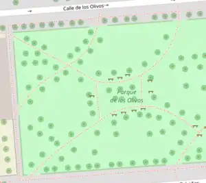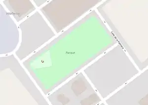 Si un elemento ya está definido por su etiqueta, la etiqueta name conteniendo el tipo de elemento, sobra. En la primera imagen, el rectángulo verde es un polígono etiquetado como leisure=park. Sin embargo, lleva también la etiqueta name=Parque. La primera etiqueta ya lo define como tal; por ello, a no ser que tenga un nombre que lo designe específicamente, la etiqueta name no debe incluirse.
