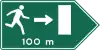 traffic_sign=CO:SIT-04[100] | Ruta de escape a salida de emergencia a la derecha | exit=emergency | El valor dentro de los corchetes [ ] debe corresponder con la distancia en el aviso. Omite el símbolo m a menos que la distancia esté dada en otra unidad. |