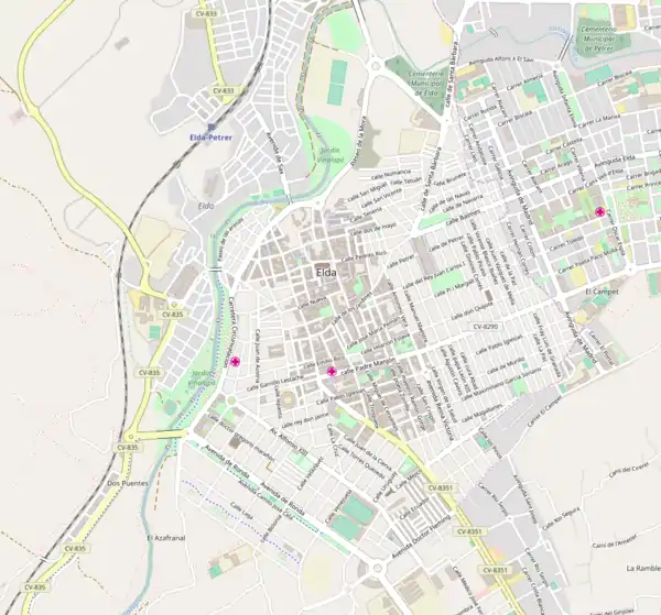 Captura de la cartografía de OSM en Elda tomada el 27 de abril de 2016.