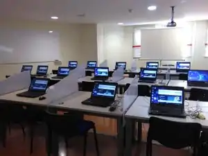 El aula actualmente tiene 23 puestos todos con puntos de red, además el edificio tiene wifi. Se trata de portátiles actualizados hace poco.