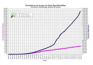 La comunidad de OpenStreetMap crece alrededor de un 10% mensual. A inicios de 2008, OSM contaba con 20 mil miembros, pero en diciembre de 2008 la cifra había crecido a 80 mil miembros. En enero de 2010, la cantidad de voluntarios rozaba los 200 mil, para llegar a 500 mil en noviembre de 2011, y en diciembre de 2012 se contaba con 1 millón de miembros. Actualmente la comunidad de OpenStreetMap cuenta con más de diez millones de miembros registrados. [1] Como muchas comunidades en línea, solo una parte de los miembros registrados llega a contribuir, no obstante, existen miles de usuarios activos que contribuyen directamente con el proyecto. Alemania y Reino Unido cuentan con las comunidades locales más amplias, pero también existen grupos de usuarios locales alrededor del mundo. La participación por parte de Estados Unidos crece rápidamente y en 2010 se fundó formalmente un capítulo local.