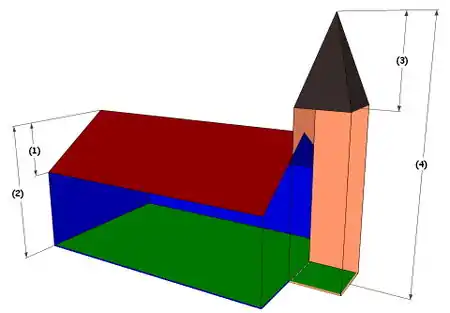 | roof:height=* | Altura del tejado en metros. La altura de la fachada se calcula como la altura total height=* menos la altura del tejado roof:height=* |