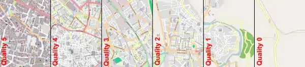 - 4 = Acabado, comprobado con herramientas como qa.poole.ch, tools.geofabrik.de o layers.openstreetmap.fr / Cobertura de todas las calles