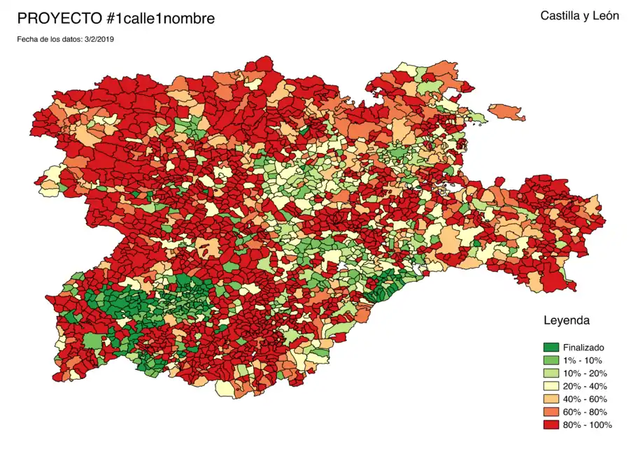 En esta revisión se ha impuesto la metodología surgida de la campaña catalana #1carrer1nom, consistente en un registro del progreso por provincias así como un mapa de progreso.