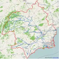 La importación en proceso se refiere a los datos hidrográficos disponibles en la administración de la Confederación Hidrográfica del Segura. La Cuenca del Río Segura se encuentra en el cuadrante sur-oriental de España.