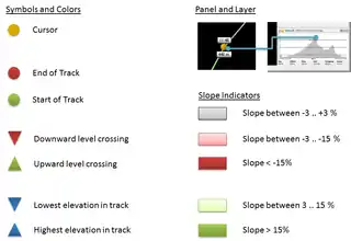 | 29875 | Distingue entre ganancia o pérdida de altitud alta o baja (cambios de altitud < 3% se muestran en gris), nuevo icono |