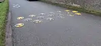 | traffic_calming | mini_bumps | A group of small bumps in any shape, for example a circle, installed as traffic calming device |