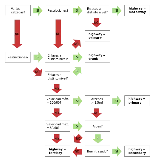 En la comunidad española de OSM se considera necesaria una normalización que sea coherente con el estado, usos y condiciones de la vía para justificar su categoría.