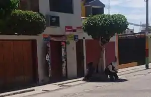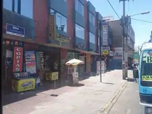 Un local para realizar fotocopias con recarga para llamadas, agente bancario (BBVA Continental/Kasnet) y heladería. Al costado, un locutorio (para realizar llamadas), un snack, una heladería y chocolatería. En el siguiente, también de copias, lavado de ropa (lavandería), agente bancario (Caja Arequipa) y un local para apuestas (Tinka o "Punto de la suerte"). | Primer local: shop=copyshop ice_cream=yes Segundo local: shop=kiosk lottery=yes Adicional: amenity=telephone Por definirse |