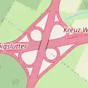 Dependerá de la clasificación de cada vialidad conectada a ella. | En OSM, las rampas viales tienen etiquetas especiales, las cuáles están descritas en ésta otra página. | En un distribuidor estándar de "tipo trébol" donde todas las carreteras que se conecten a él sean highway=primary, cada rampa tendrá la etiqueta highway=primary_link, con el agregado (_link) al final. |