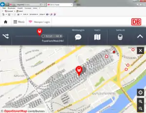 - Die Schweizer Bundesbahnen (SBB) nutzen OSM-Daten für Umgebungspläne von Bahnhöfen.