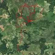 All together we walked about 60 kilometers of hiking trails. You can see most of the tracks in this image. The marked spot is at the Ungerberg.