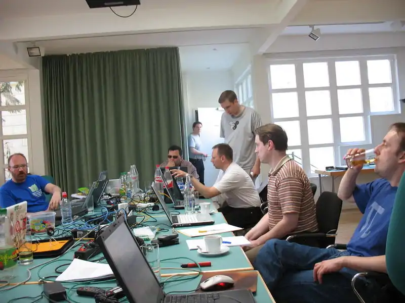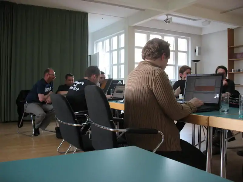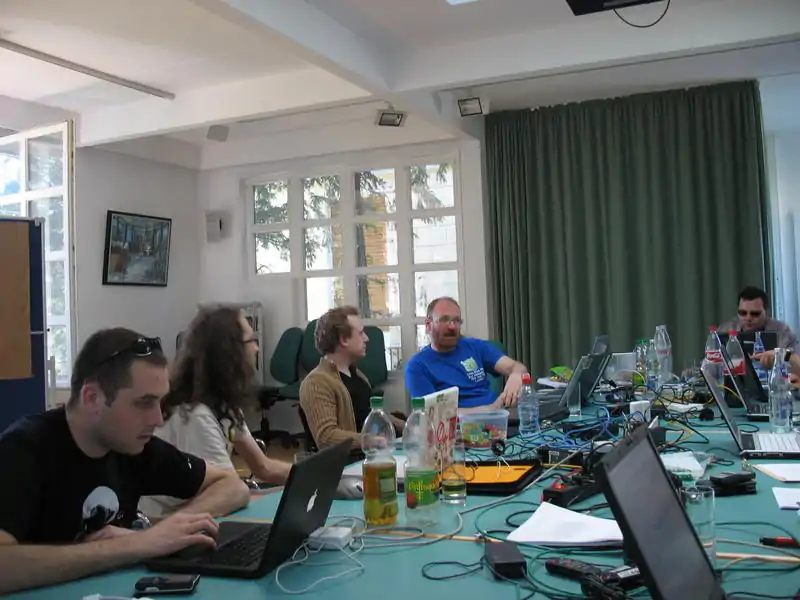 At least on one day, I got them in the room to take a fake picture. At least Nick Black, Jörg Ostertag, Steve Coast, Hakan, the unvisible man, Dirk and Jochen did attend: