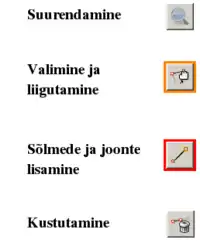 - 1. Kasuta nuppu 'Sõlmede joonistamine' ja klõpsa sõlmede paigutamiseks sulle sobivasse kohta. Jooned ühendavad sõlmi (kiirklahv = 'a').