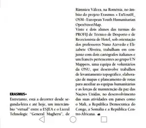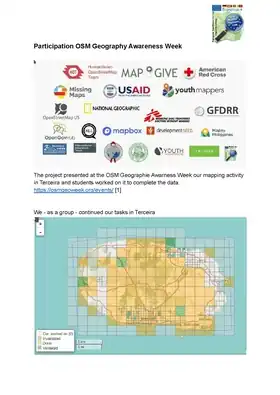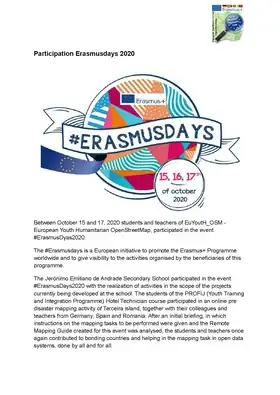 The #Erasmusdays is a European initiative to promote the Erasmus+ Programme worldwide and to give visibility to the activities organised by the beneficiaries of this programme. The Jerónimo Emiliano de Andrade Secondary School participated in the event #ErasmusDays2020 with the realization of activities in the scope of the projects currently being developed at the school. The students of the PROFIJ (Youth Training and Integration Programme) Hotel Technician course participated in an online pre disaster mapping activity of Terceira island, together with their colleagues and teachers from Germany, Spain and Romania. After an initial briefing, in which instructions on the mapping tasks to be performed were given and the Remote Mapping Guide created for this event was analysed, the students and teachers once again contributed to bonding countries and helping in the mapping task in open data systems, done by all and for all. |