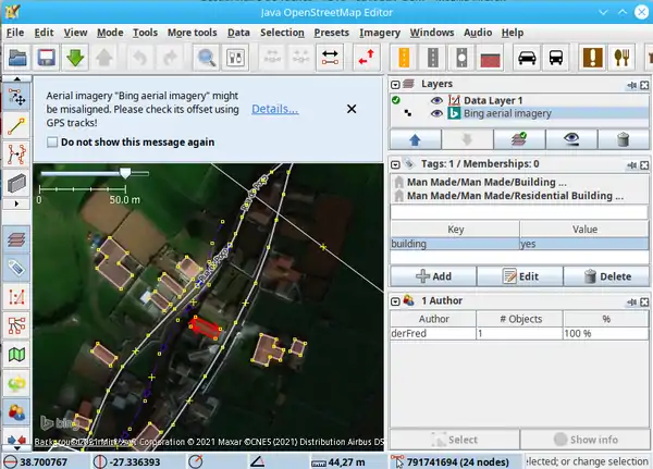 Mapping Angra's street names and housing numbers.Confirmation and adjusting the results by using JOSM. | |