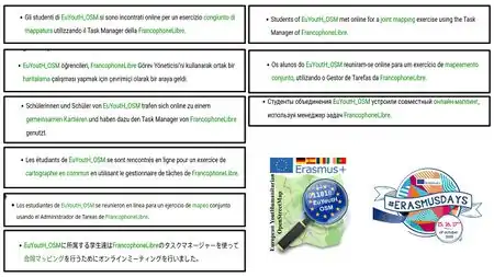 | Between October 15 and 17, 2020 students and teachers of EuYoutH_OSM - European Youth Humanitarian OpenStreetMap, participated in the event #ErasmusDyas2020.