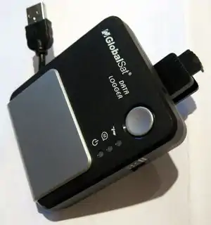 Works well with laptops. Stops working on low temperature. Uses serial USB, so it should work with all GPS track programs, loads pl2303 on Linux. Good buy, this unit will almost always get a lock directly, and I really recommend it over BU-303. The sad part is that the lock usually isn't that good. I've experienced very strange behaviour where it will lose GPS lock and get a new bad lock positioning it self 50 m from the right position and then drift back to the right position. I'm not sure why this is, or exactly what is happening. It also has issues when you are stopped or moving slowly where the position jumps around by a few metres. Once it as been running for a 5–10 minutes this problem goes away. Globalsat DG-100![]() GlobalSat DG-100 Data Logger ![]() Globalsat DG-100 with washer