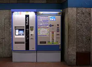 amenity=vending_machine+ | Automates de vente de tickets de transport | Utiliser systématiquement en conjonction avec vending=public_transport_tickets network=Grandes Lignes;RATP;Transilien;… Tags facultatifs : operator=SNCF;RATP;... payment:coins=yes;no payment:notes=yes;no wheelchair=yes;limited;no colour=blue;yellow... |