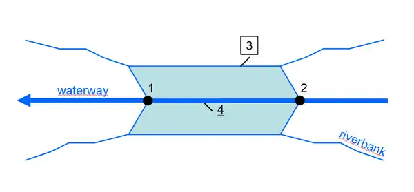 | Marque une portion d'un cours d'eau encadré par des portes d'écluses formant une écluse |