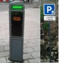 - amenity=parking + maxstay= 1.5 hours + access:conditional=no @ (Su,PH) . Maxstay (temps maximum pour rester) est surpassé par les conditions d'accès. Dans ce cas, le stationnement est généralement alloué pour 90 minutes, mais pas de stationnement le dimanche et les jours fériés.