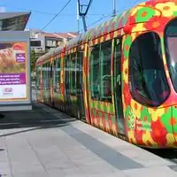 | BEV claire en gare TGV | BEV simple pour les passagers. | Bande guidante lisse & sol rugeux. | Quai de tramway de Montpellier. |