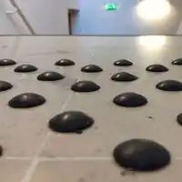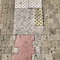 | Picots espacés et détectables. | Picots collés sur la pierre. | Bande de picots collée. | Qualité tactile difficile à interpréter. |