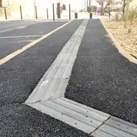 | Bande guidante sur une rampe. | Raccordement vers la traversée. | Cheminement le long du trottoir. | Cheminement sécurisé parking. |