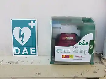 En France, les établissements pouvant accueillir un public nombreux ont l'obligation de disposer d'un défibrillateur. On peut donc souvent les trouver dans :