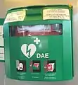 Ce sont bien souvent des boîtiers verts (des fois rouges), avec la mention "DAE" ou "Défibrillateur".