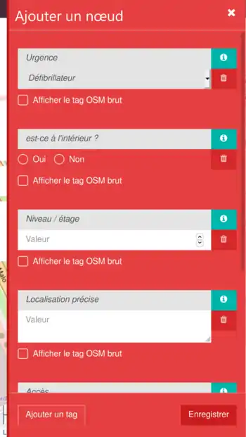 De nombreux autres outils OpenStreetMap permettent de renseigner des défibrillateurs. N'hésitez pas à regarder la page de documentation sur les défibrillateurs pour choisir les bons attributs.