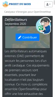 ![]() ProjetDuMois.fr ProjetDuMois.fr permet d'ajouter des défibrillateurs, trouver ceux manquants et accéder aux statistiques du projet. |