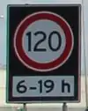 Vitesse limitée à 120km/h de 6h à 20h puis à 100km de 22h à 6h, pas de limitation explicite de 20h à 22h. | |