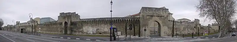 - ↑ Particularisme provençal : « en » Avignon ou « à » Avignon, explication sur Lexilogos, la forme avec « en » s'étant conservée surtout pour éviter le hiatus phonétique. Voir aussi sur le Wiktionnaire francophone. À l’origine, la locution « en Avignon » désignait l’État pontifical d’Avignon qui fut rattaché à la France en 1791. Jusqu’à la Révolution, on résidait donc en Avignon comme on pouvait résider en Provence. De même, « en Arles » se justifiait au temps où Arles n’était pas seulement une ville mais un royaume. La commune d’Avignon indiquait sur son site Internet (archive) qu’il convient d’utiliser la préposition « à » devant son nom. En conclusion, mieux vaut employer la préposition « à » lorsqu’on parle de la commune.