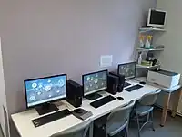 Une imprimante en libre-service pour le public. Généralement présentes au sein de bâtiments publics tels que des librairies ou des centres d’activité et pouvant nécessiter un paiement.