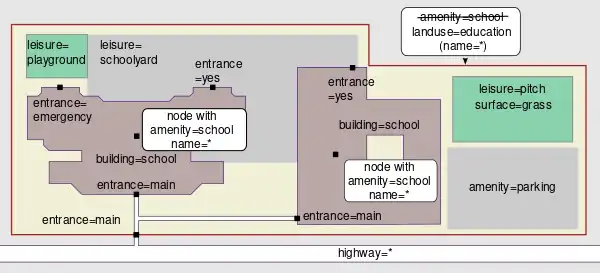. en s’assurant de respecter la règle one OSM-element for each school.