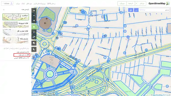 نمایش گرهها و خطوط نقشه با روشنکردن لایهٔ دادههای نقشه