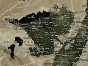 ![]() | Sometimes known as ‘the garden of Egypt’, technically el-Faiyum is an oasis. Separated from the River Nile by a narrow stretch of desert, this fertile basin of land has a large lake, Birket Qarun on its northern side which is fed by the Bahr Yusef, a tributary of the Nile.