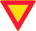 Give way sign. Usually tagged as highway=give_way instead. | highway=give_way (on a node) | |