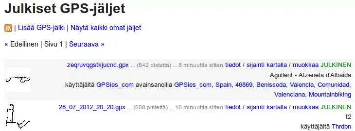 - Klikkaa GPS kuvaketta ja näet kaikki kaikkien käyttäjien reitit alueella.