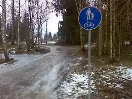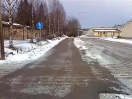 - ↑ The traffic sign "422 Pyörätie" forbids other vehicles from using the section and in some rare cases pedestrians should use such ways - but mostly there's a footway nearby, which the pedestrians should use.