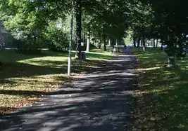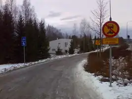 - ↑ The traffic sign "427 Ratsastustie" forbids other "road users" from using the way, i.e. no walking allowed.