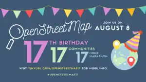 To celebrate OSM's 17th anniversary in 2021, the Local Chapters and Communities Working Group of the OpenStreetMap Foundation is organising a 17-hour global mapping party on the 8th of August!