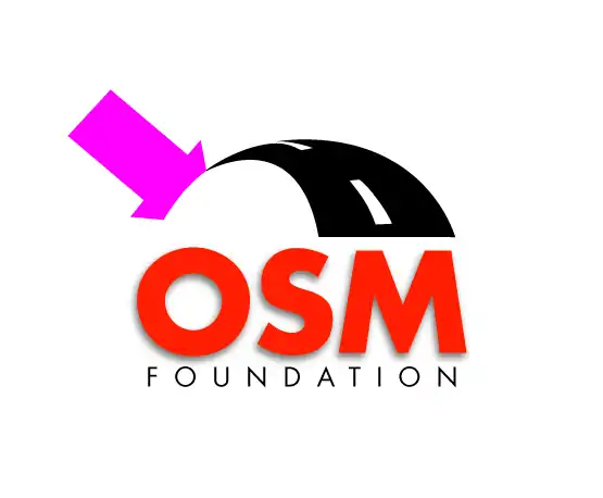 An overlapping road forming the "O" of OSM and the "F" of Foundation